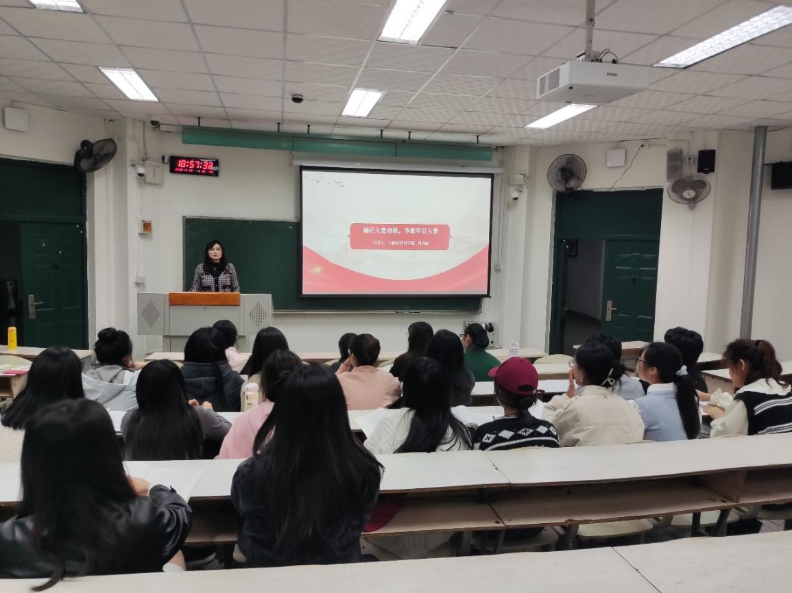 10月22日晚上,学院邀请了党总支副书记刘凤丽为学员们讲授了主题为“端正入党动机,争取早日入党”的党课,旨在帮助学员们认识到入党是一种光荣和庄严的事情,需要端正入党动机,引导学员明确入党动机的重要性和对个人成长的意义,提供学习入党动机的方法和途径,争取早日实现入党的目标。