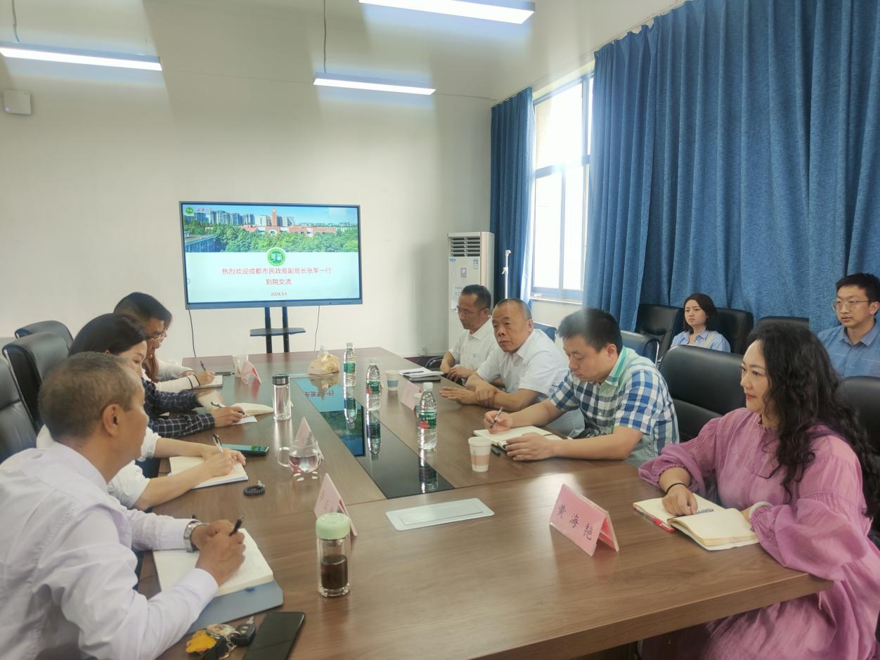 2024年5月6日下午,成都市民政局党组成员、副局长张军到伟德国际1946调研,同行人员有成都市民政局养老服务指导中心主任李长根、四川省数字家庭产业与应用促进会副会长兼秘书长张林。会议由学院党总支书记王相平主持,学院领导班子参加会议。