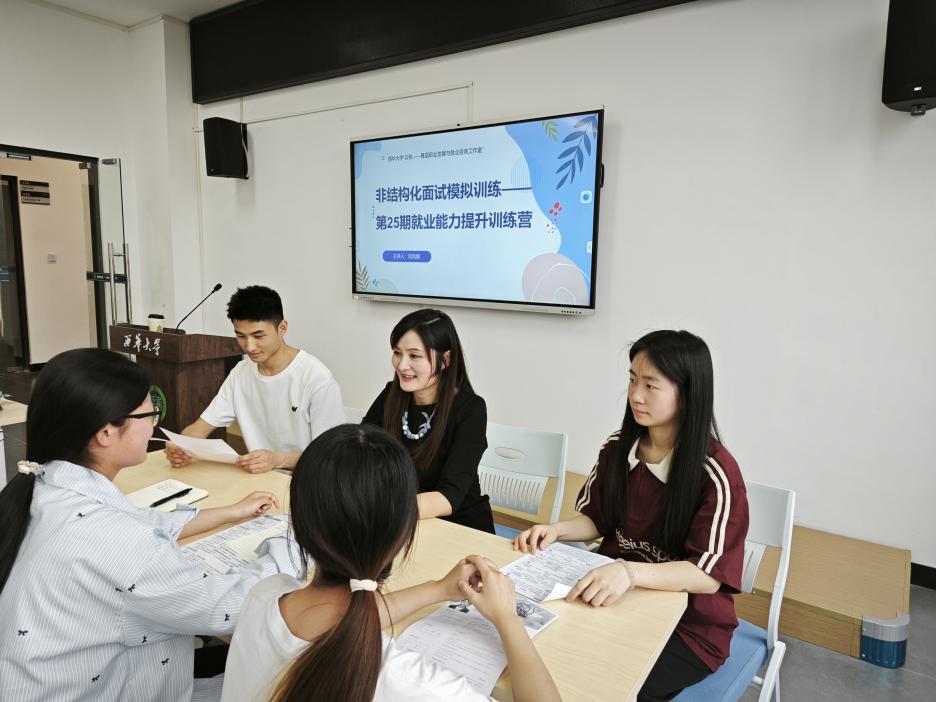 4月23日下午,伟德国际1946“云帆”青蓝职业发展与就业咨询工作室在5ST-419开展了非结构化面试主题活动。
