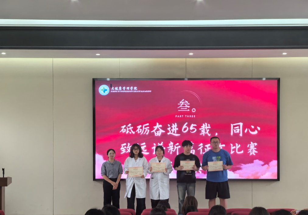作为校庆系列活动之一,学院举办“砥砺奋进65载·同心致远谱新篇”主题征文比赛。活动中,三位校友为获奖同学颁发证书并合影留念。征文作品以真挚笔触回顾学校发展历程,抒发了青年学生对母校的深切祝福与使命担当。