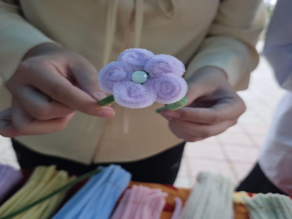 活动开始,工作人员对活动进行简单讲解和教学,并指出活动旨在以手工为载体,让同学们在全情投入中,实现情绪疏导、知识传播与成长赋能的多重价值。随后,同学们充分发挥创意,利用扭扭棒可塑性强、色彩丰富的特点,将抽象情绪转化为一个个独一无二的立体作品。有的同学制作出象征“喜悦”的彩色花束,有的同学则用扭扭棒搭建起代表“希望”的蝴蝶,在动手创作的过程中,大家不仅体验到劳动的乐趣,更实现了情绪的外化表达,在创作中放松身心。