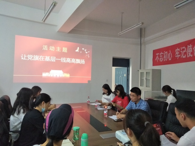 为庆祝中国共产党成立100周年,激励动员我院全体党员团结群众建功新时代、奋进新征程,2021年7月1日下午,伟德国际1946党委教工支部和学生支部在4C501会议室联合开展“让党旗在基层一线高高飘扬”主题党日活动。会议由伟德国际1946学生党支部程志宝同志主持,学院教工党支部和学生党支部党员参加。
