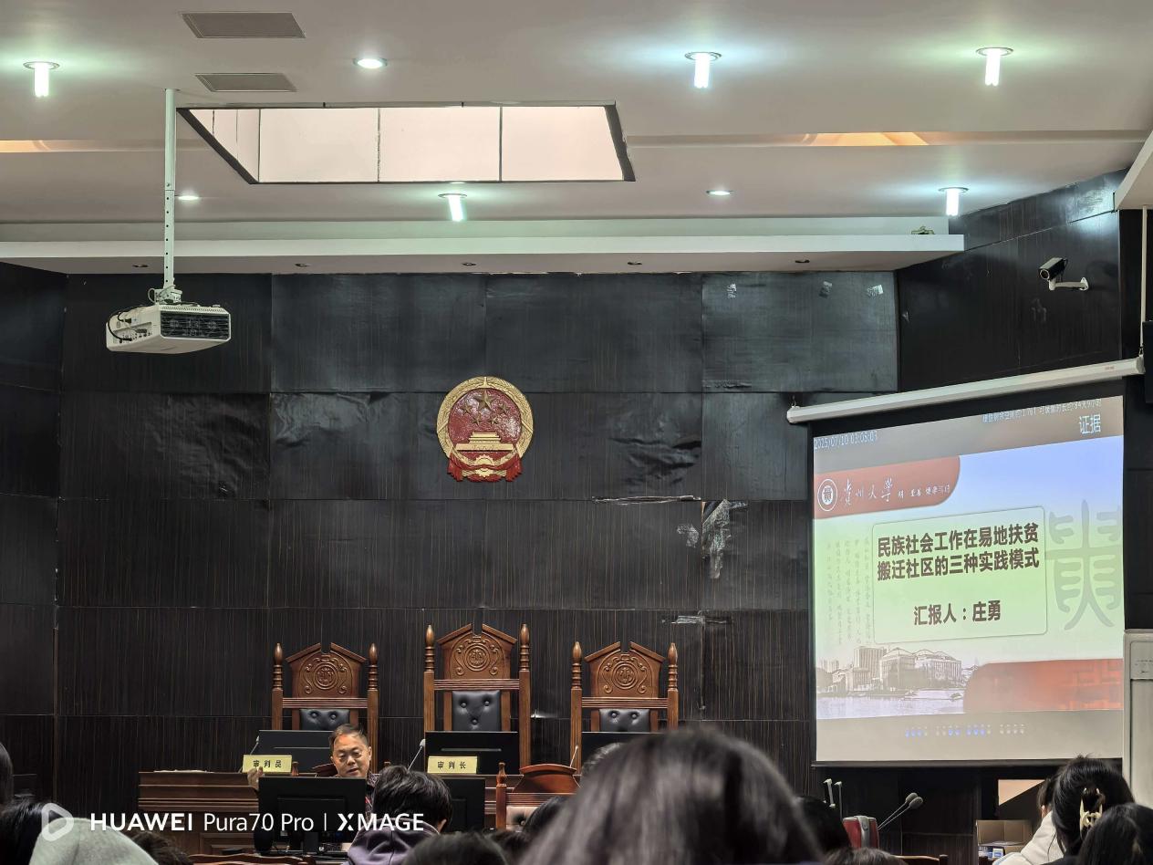 11月29日下午,伟德国际1946,Bevictor伟德,伟德官网(心理健康教育中心)在新模拟法庭成功举办研究生学术讲座。本次讲座特邀贵州大学公共管理学院教授、博士生导师庄勇先生主讲,主题为“民族社会工作在易地扶贫搬迁社区的三种实践模式”,学院副院长熊征担任主持人,社工系系主任刘婷及社会学、社会工作等相关专业研究生及社会工作实验班学生共同参与。