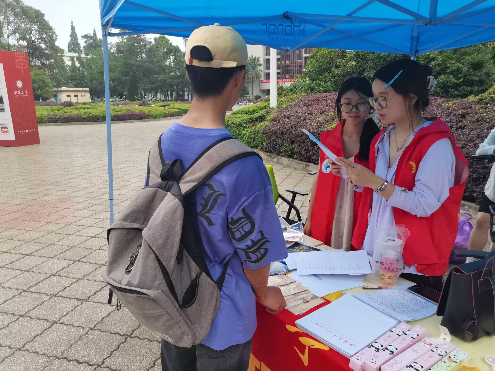 活动当天,学院在明德广场摆点,40名志愿者通过发放宣传手册、现场讲解等方式,向过往师生介绍无偿献血、造血干细胞捐献、人体器官捐献的意义、流程及相关政策福利,消除大家对“三献”的认知误区。志愿者们围绕“献血传递希望,携手挽救生命”的活动口号,结合真实案例生动讲述“三献”如何为生命续航,让师生直观感受公益力量。现场还设置了互动问答环节,志愿者们耐心解答师生提出的疑问,引导大家正确认识“三献”公益事业。