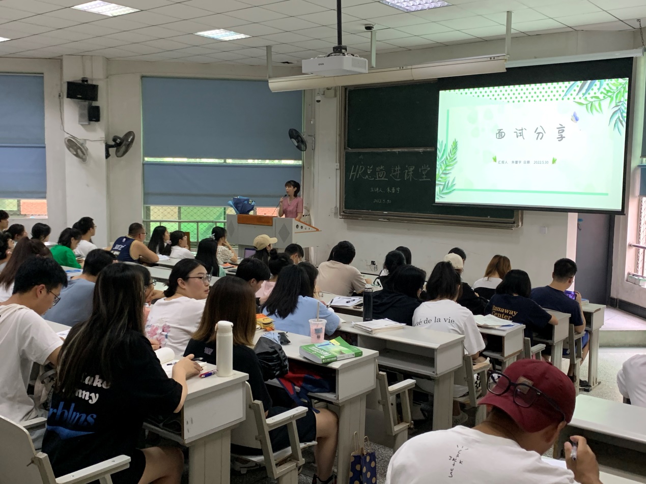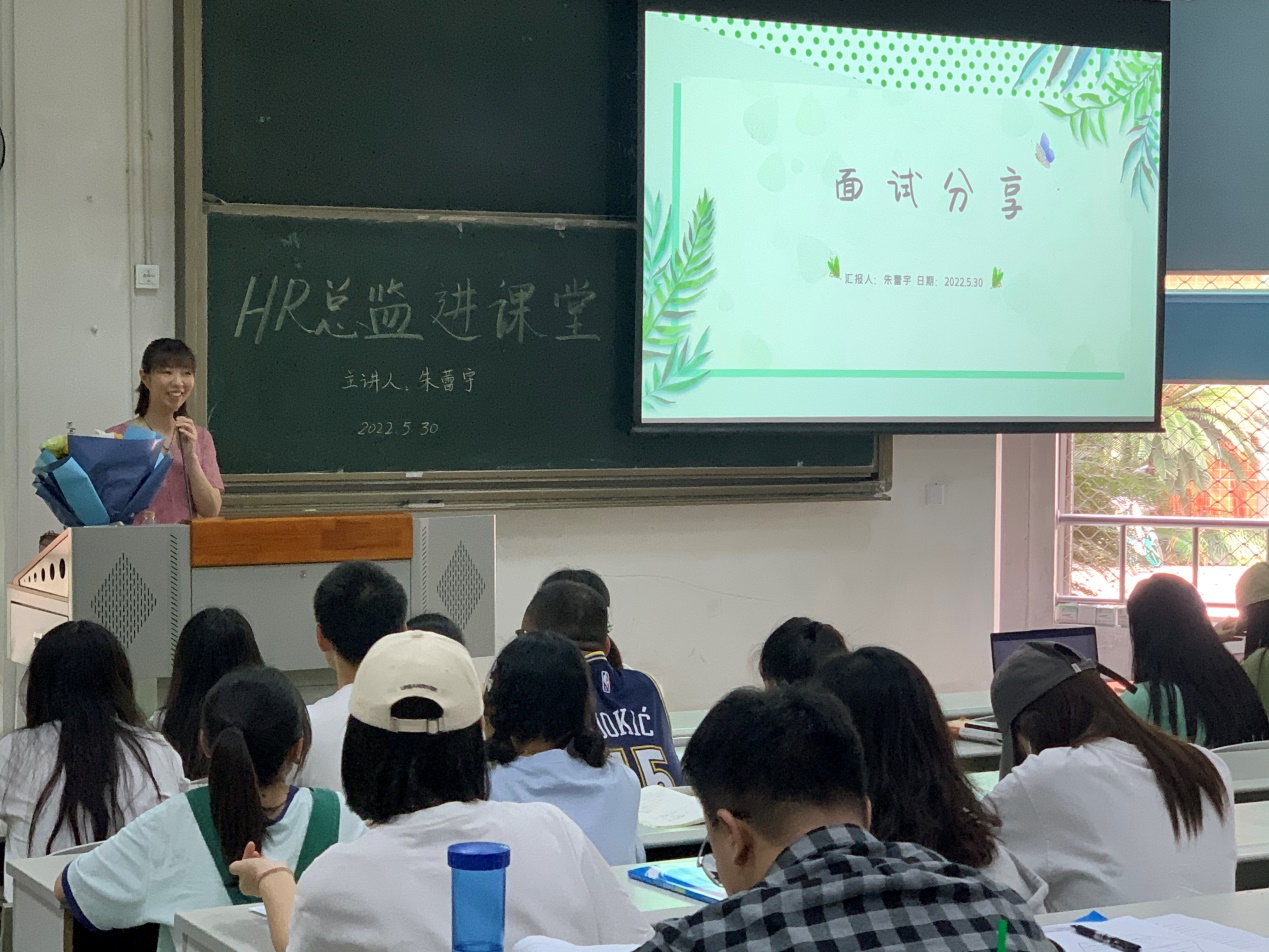 5月30日下午, 4A101教室的《大学生就业21问》课堂迎来了一位特殊的嘉宾,她就是有着12年HR从业经验、担任过两家软件IT企业人力资源总监、负责过集团性上市企业校园招聘和人才发展、近两年帮助过100+求职者的模式面试和职业规划辅导、电子科技大学MBA、资深人力资源管理师朱蕾宇。朱蕾宇为学生们带了一堂《面试分享》的专题授课。