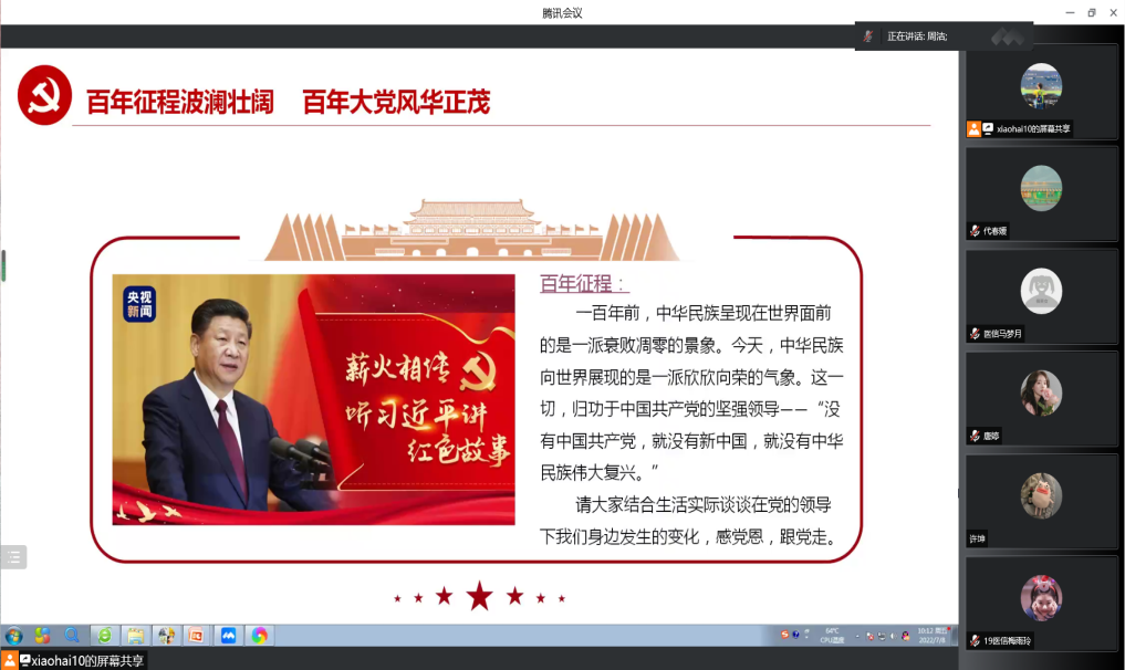 今年是中国共产党成立101周年,为深入学习贯彻习近平新时代中国特色社会主义思想,弘扬伟大建党精神,巩固和拓展党史学习教育成果,进一步提高党组织的凝聚力、战斗力和号召力,教育引导广大师生党员深刻领会“两个确立”的决定性意义,增强“四个意识”、坚定“四个自信”,做到“两个维护”,努力营造奋楫笃行、创先争优的良好氛围,以实际行动迎接党的二十大胜利召开。伟德国际1946学生党支部7月7日通过线上形式开展支部书记讲党课以及主题党日活动,此次活动学院学生党支部全体党员参加。