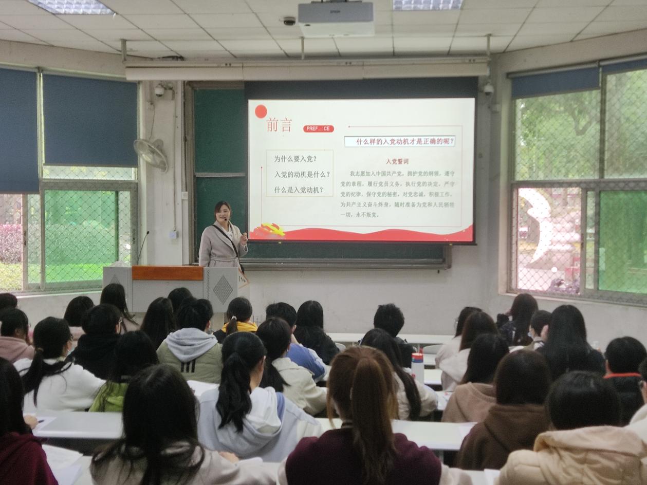 发展对象的第一次课堂教学中,党校老师分别对党员学习党章、中国共产党的百年奋斗历程、老一辈革命英雄所作贡献等内容进行了详细讲授,叮嘱学员们要从中汲取精神力量,牢固树立党章意。在校史馆的参观中,无论是建校初期的大门,又或是学校的模型图和牌匾,学员们一起见证了西华的历史,感受“求是、明德、卓越”的西华精神。开班动员大会在学员们齐唱《义勇军进行曲》中拉开序幕,随后发展对象、入党积极分子的学员代表彭意婷、张文萍依次发言表明了自己的决心,主持人薛曾轶对党校班规、要求等进行了阐述,随后,王相平书记对学员提出了期望和要求,最后由唐婷带领全体学员庄严宣誓,会议在阵阵掌声中圆满落幕。入党积极分子的第一次党课课堂教学中,王书记围绕“重温党的历史,坚定理想信念”的主题从理想信念的内涵、树立科学的理想信念和强信念跟党走三个板块开展了教学,劝诫全体学员努力学习,规划未来,开拓视野,积极向党组织看齐靠拢。入党积极分子的第二次实践教学中,学员围绕“学习第二十次全国代表大会”结合了自身实践经历、着眼于家乡变化等积极发言,坚定了为人民服务的信念,树立了努力学习、回报祖国的人生理想。在入党积极分子的第二次课堂教学中,刘书记围绕“端正入党动机,争取早日入党”的主题,先向同学们讲述了入党积极分子到发展对象的转变过程,然后引导同学们树立正确的入党动机、严格履行党章规定的入党手续,鼓励大家积极采取行动,不断端正思想态度,争取早日入党。