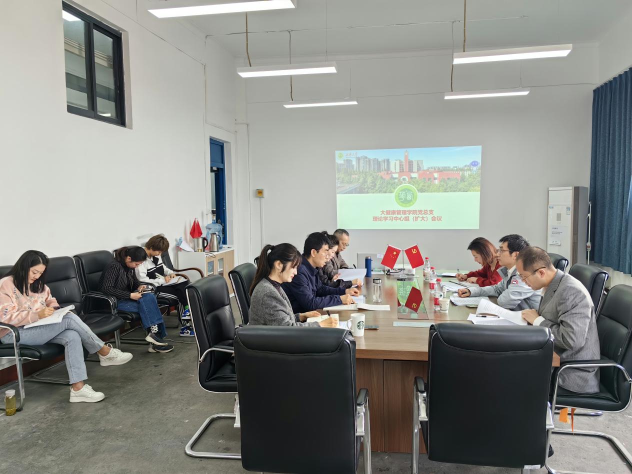 3月10日上午,大健康管理党总支理论学习中心组(扩大)学习会在1A6007召开,会议由学院党总支书记王相平主持,学院党总支委员、班子成员、支部书记参会。学校巡学旁听第9组成员:学校党委常委、统战部部长黄进,材料科学与工程学院党委书记查康,联络员曾真列席参加。